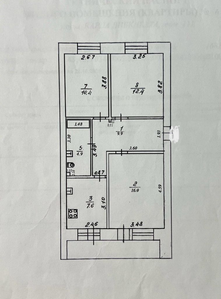 | Площадь (кв.м.) | Общая: 61.2 Жилая: 38.8 Кухня: 7.6 61.2 / 38.8 / 7.6 |